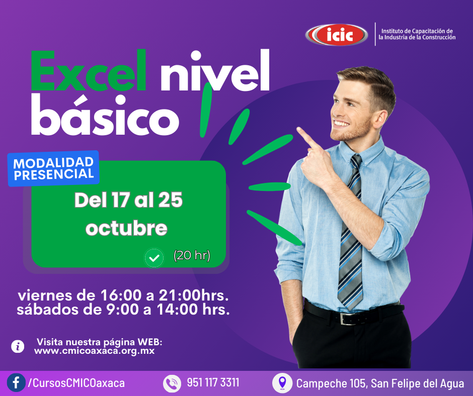PPRESENCIAL Del 17 al 25 de Octubre Viernes de 16:00 a 21:00 hrs. Sábados de 9:00 a 14:00 hrs Publico en general: $2,400.00 Afiliado CMIC: $1,900.00 Estudiantes: $1,700.00